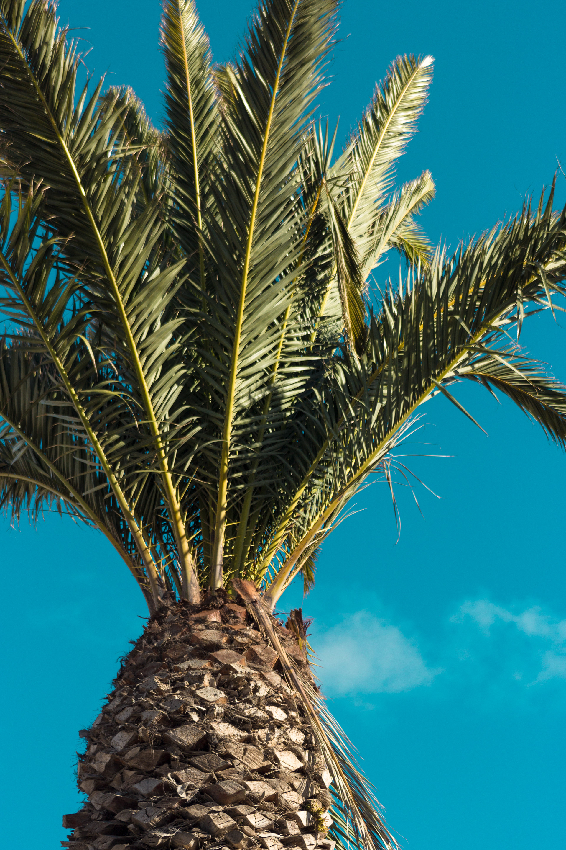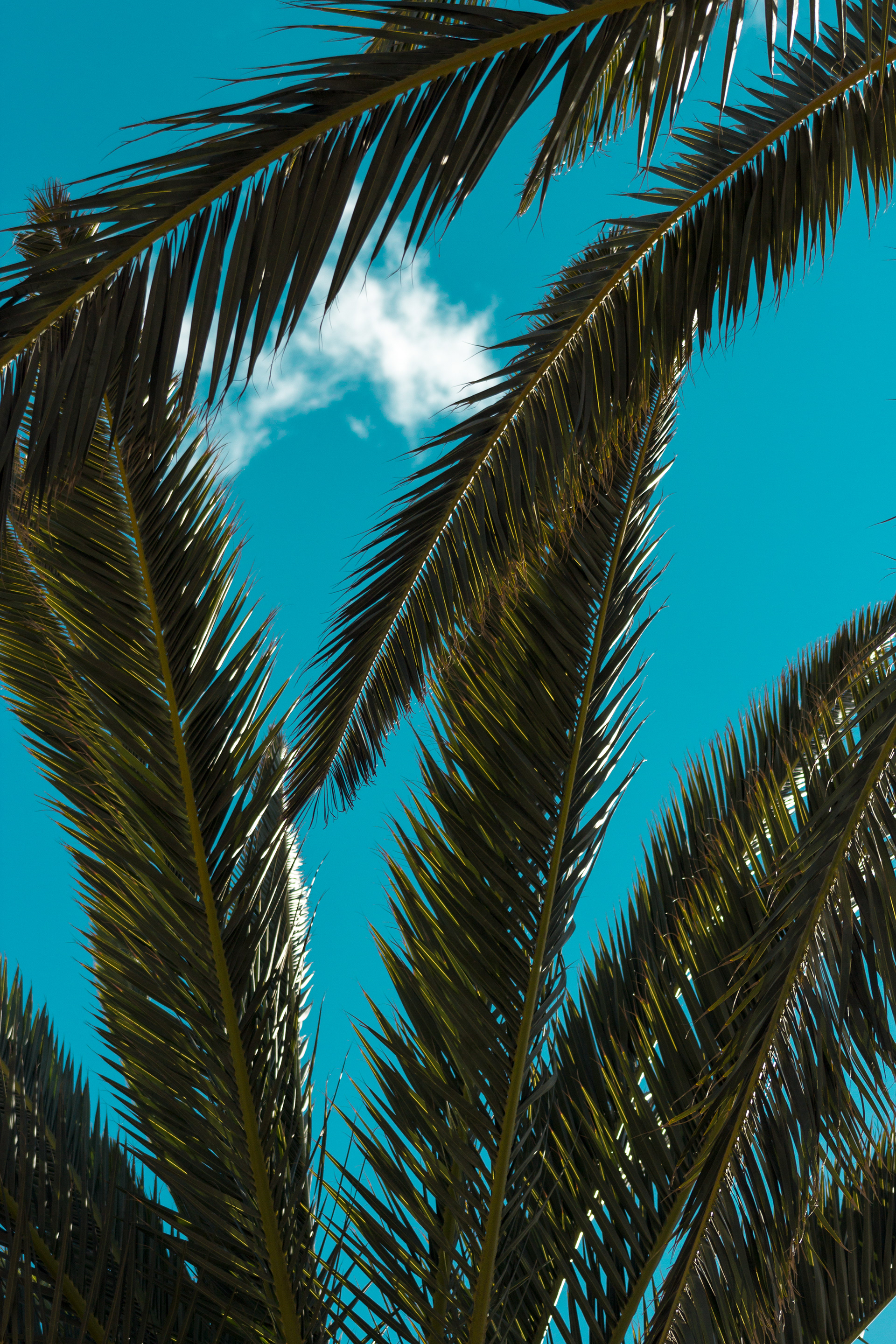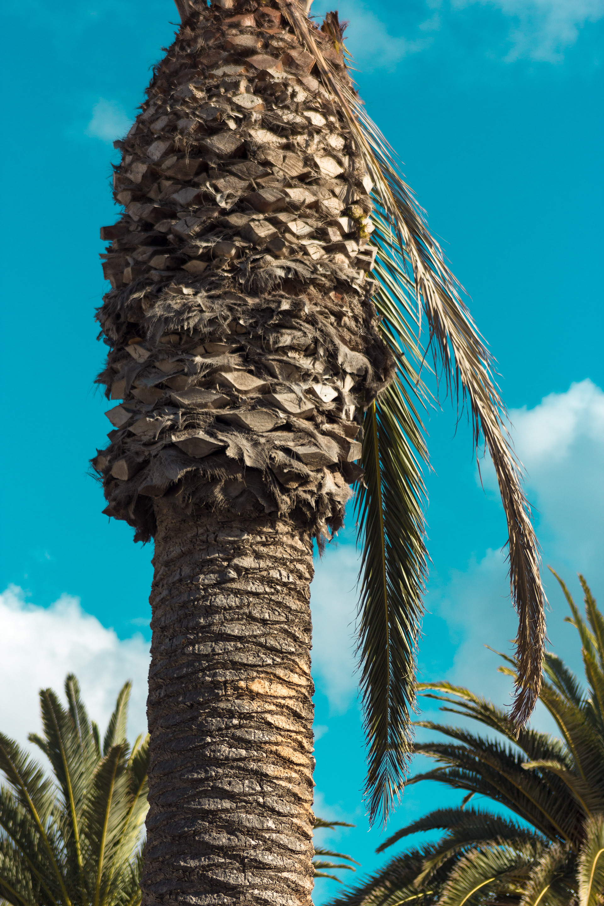 Set of palm trees and a strong sky. Fuerteventura, Las Palmas 2019